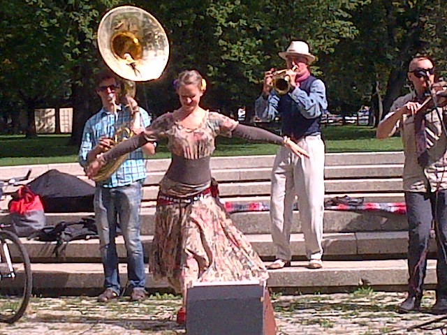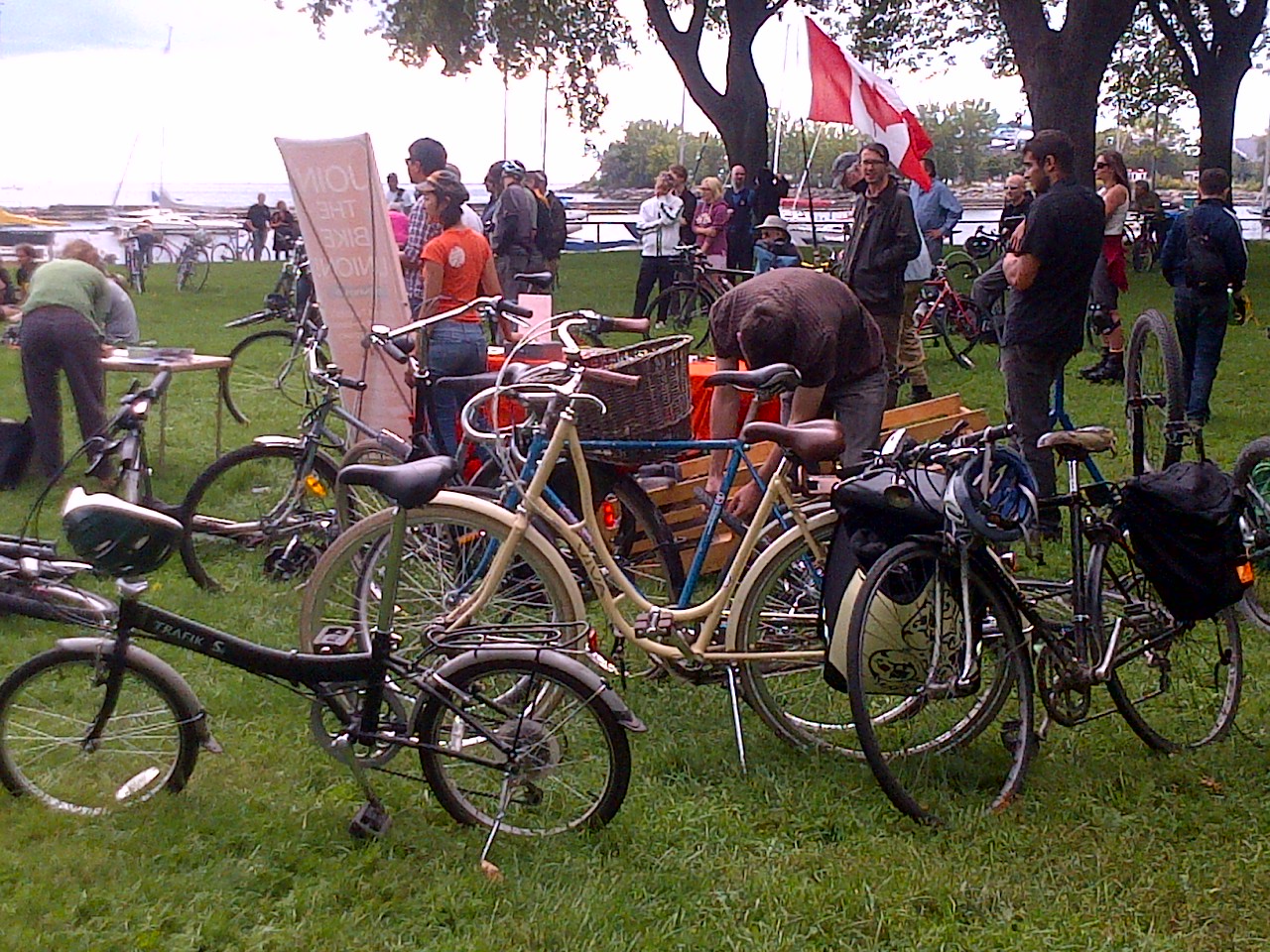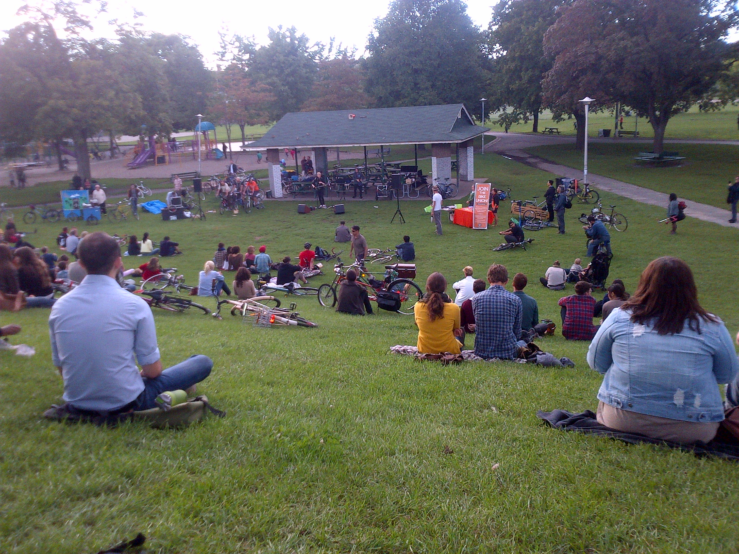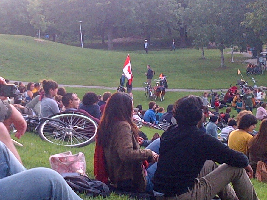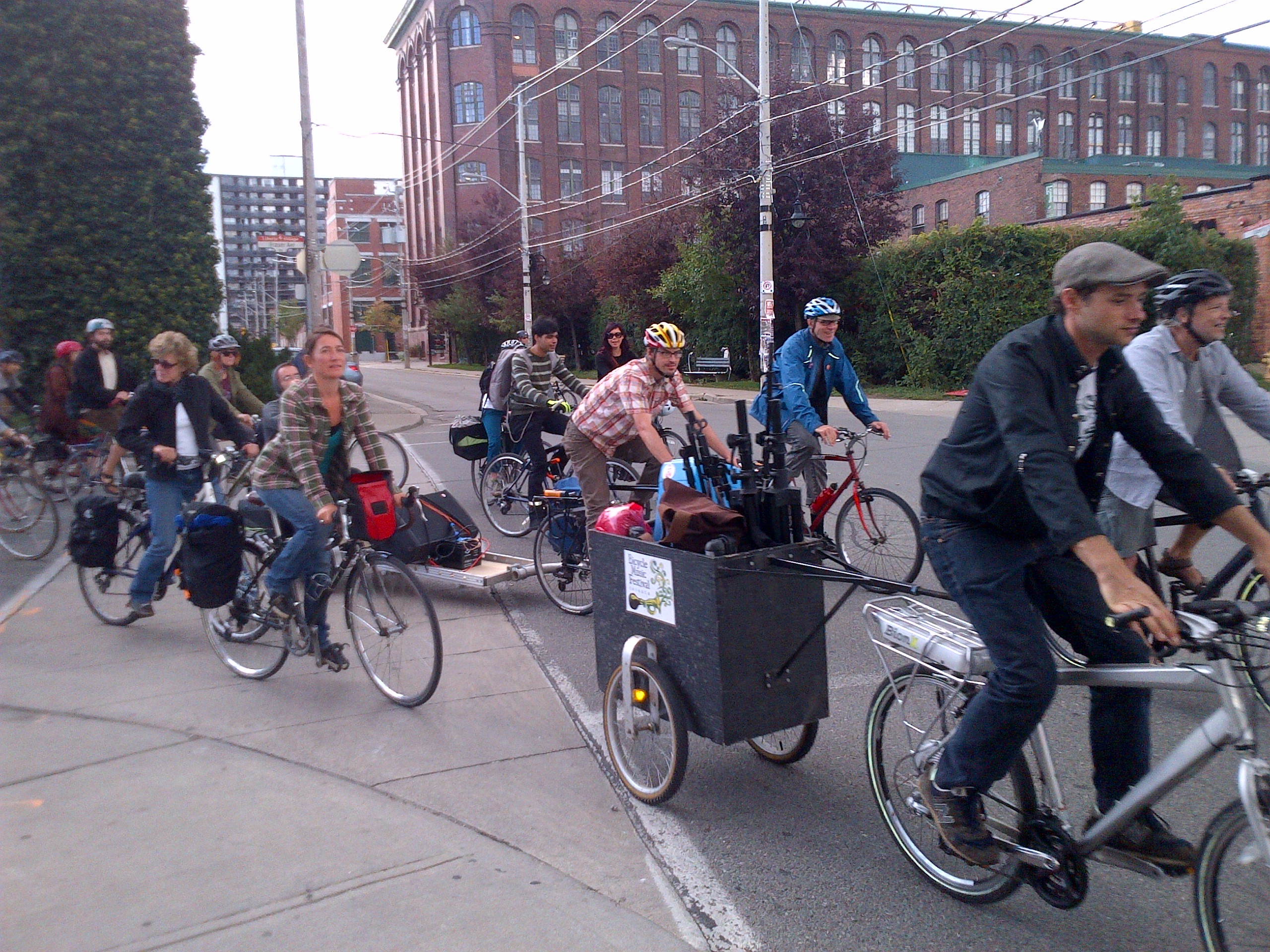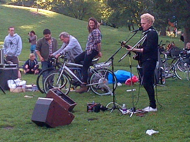 The Toronto Bicycle Music Festival rolled across the city this past weekend. A colorful throng of cycling enthusiasts pedaled their way through Toronto’s streets and parks with a motley assortment of amplifiers, guitar-strumming minstrels and small children in tow. Enjoy these photos by Jennie Green (click to enlarge image). We captured some fantastic sounds! Videos coming soon.